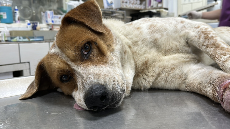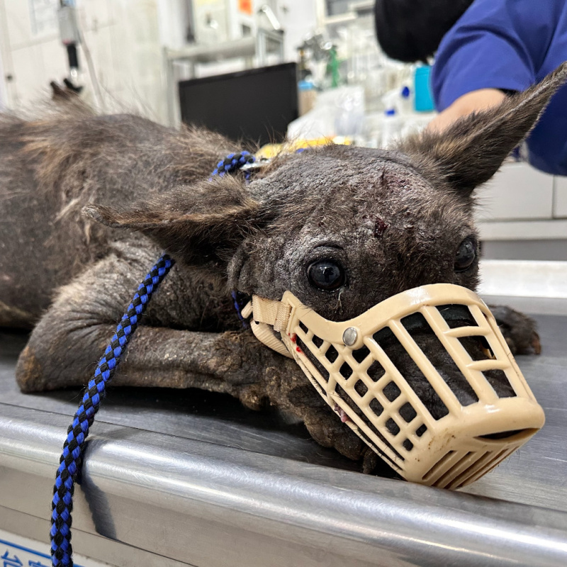 2/27 在士林救援了全身皮膚病、心絲蟲焦蟲感染的 Destin: